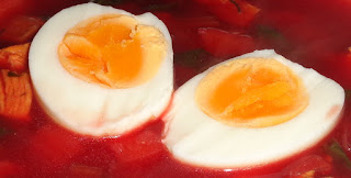8 - Zupę nalewamy do talerzy i podajemy z rozkrojonym na połówki jajkiem.